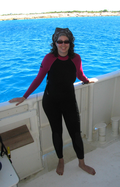 Here I am in my wetsuit... just before a dive -- I can't wait to jump in !