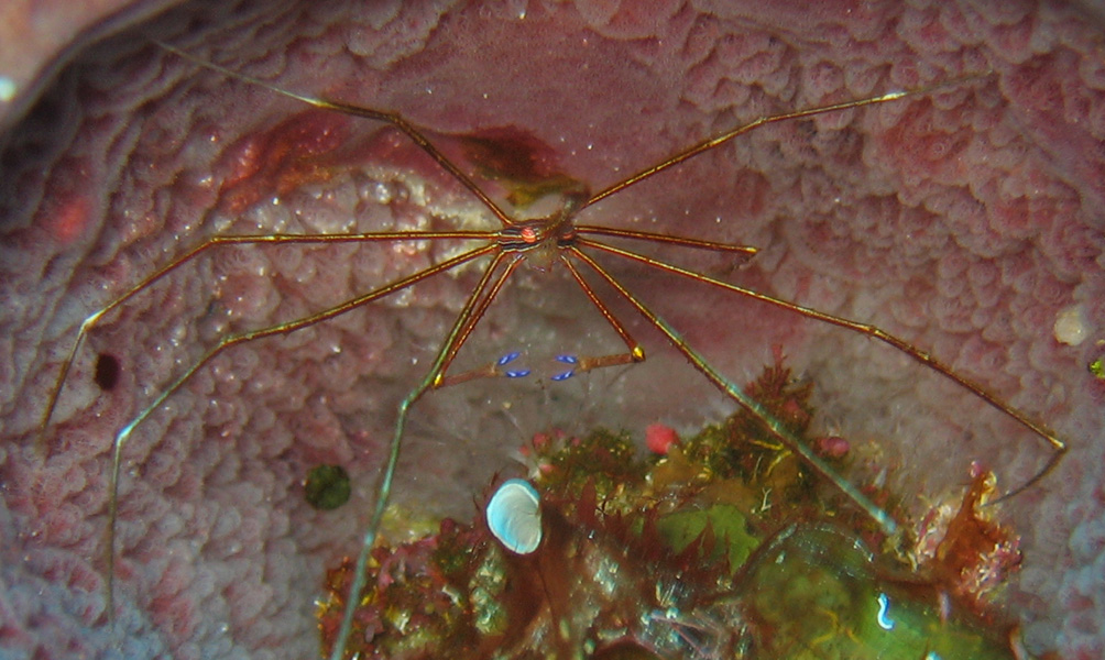 Another Arrow Crab hiding inside a sponge.