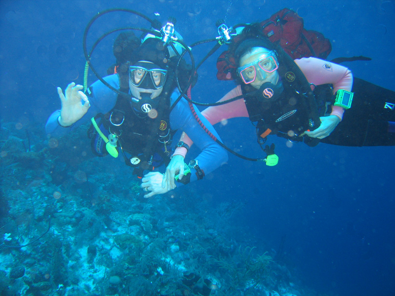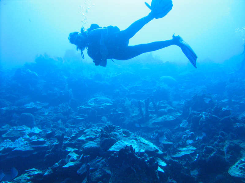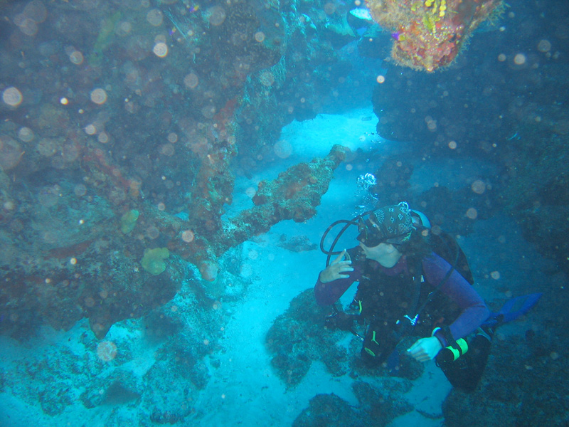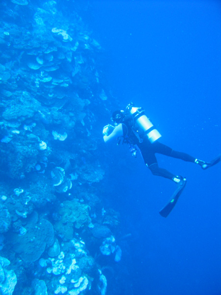 Another shot of a dive wall (and my mom!) looking up from below.