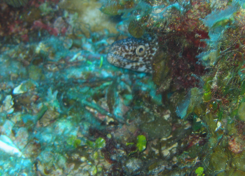 Peek-a-boo! This spotted moray eel is coming out to say hello!