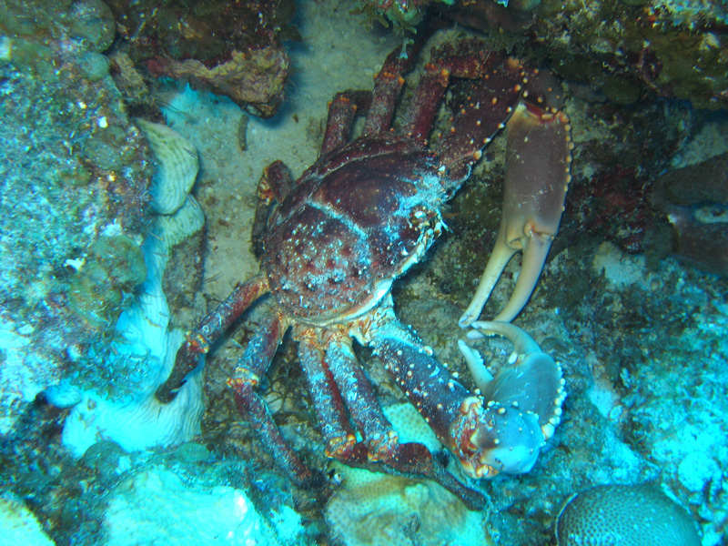 This crab was busily eating away -- I was a little wary of getting too close to this big one footer with his huge claws!