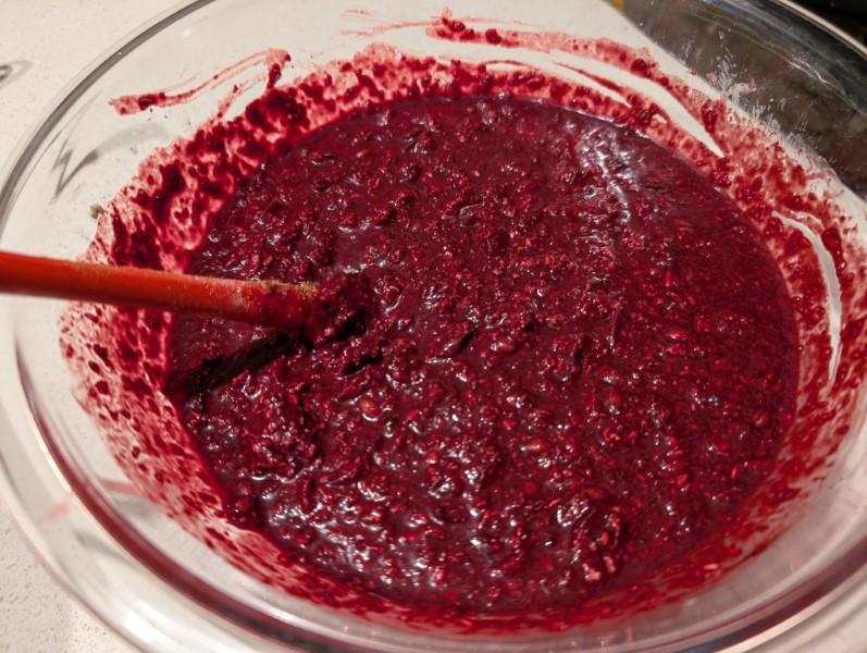- Stir the dry ingredients into the wet ingredients until just combined.